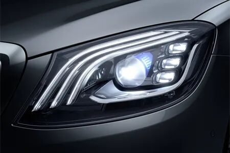 64色环境氛围照明系统与优雅的饰件线条交相辉映,魅力尽展;10种颜色方案融科技与现代设计于一体,并将内部空间精心划分为3个分区,营造出多样化的怡人氛围;动态模式下颜色更可交替变换,光影流动,美轮美奂,让您在途中也能畅享愉悦。13个高性能扬声器以及各类电子与声音设备专为车辆量身定制,打造出天籁般的Burmester®之音。前排和后排座椅的环绕立体声功能和音响优化也会带来更加激动人心的听觉享受。带ULTRA RANGE的LED大灯可在需要时随时通过单独控制的84颗LED灯泡准确开启。如果系统未在直线方向上探测到其他车辆,远光灯的照明距离可扩展至更远,令视野更为明晰与开阔。